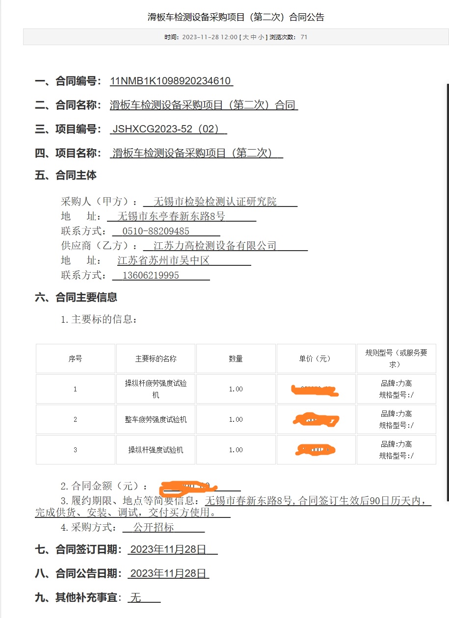 恭喜力高中無(wú)錫市檢驗(yàn)檢測(cè)認(rèn)證研究院 滑板車檢測(cè)設(shè)備采購(gòu)項(xiàng)目