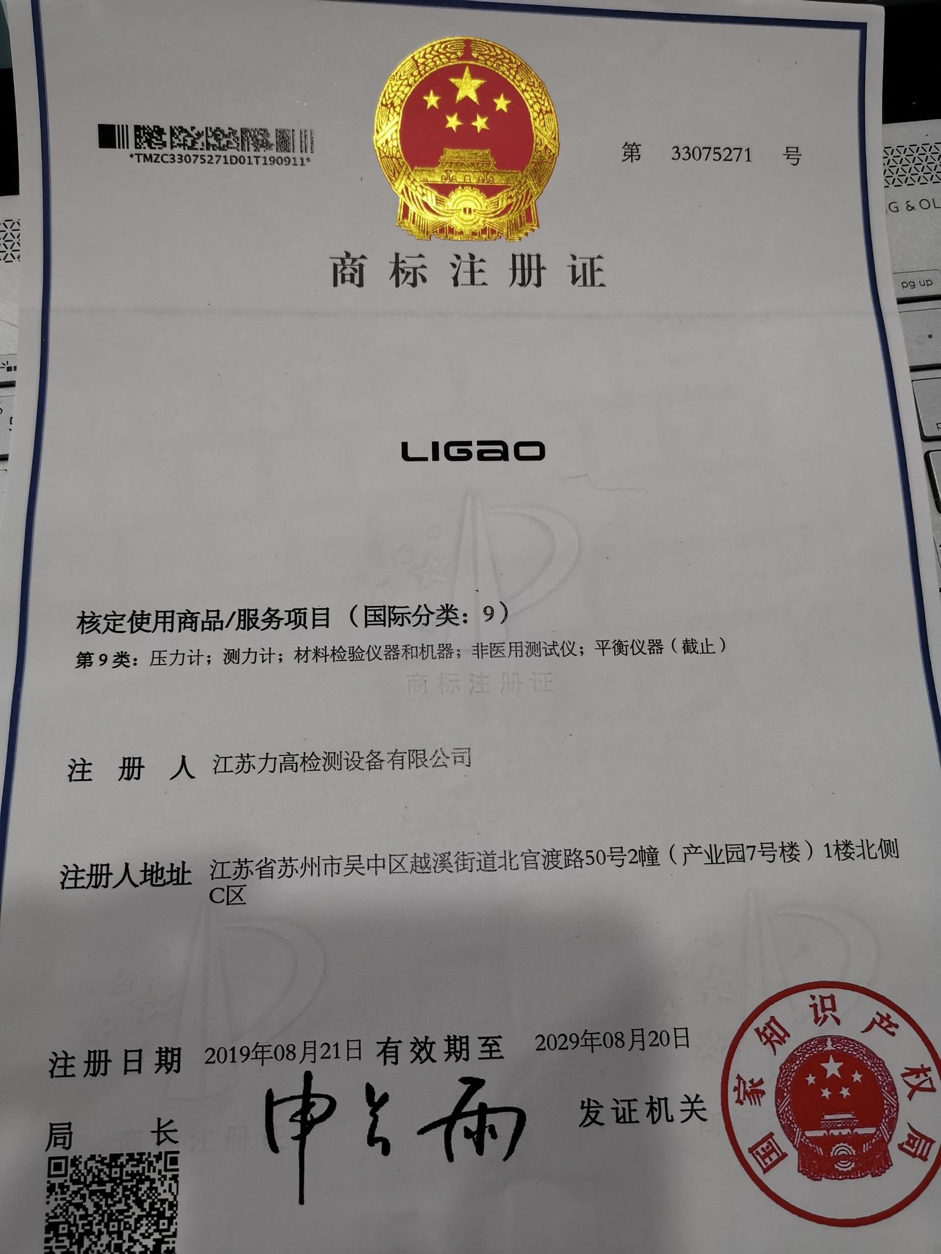 江蘇力高檢測設(shè)備有限公司商標(biāo)注冊